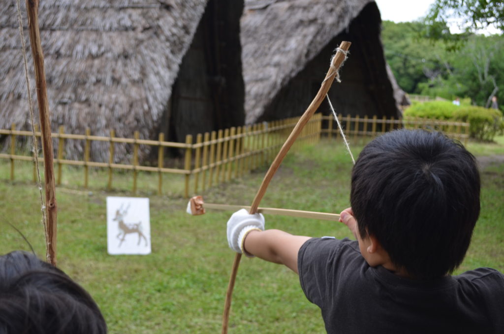 石器、弓矢、火起こしなどの体験をクリアして、縄文のくらしマスターを目指そう。