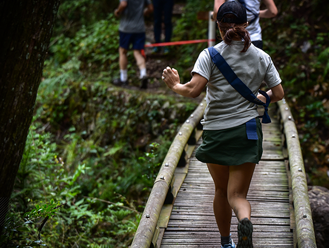 舗装されていない自然道を走るトレイルランニング、初心者でも走ることができるコースです。