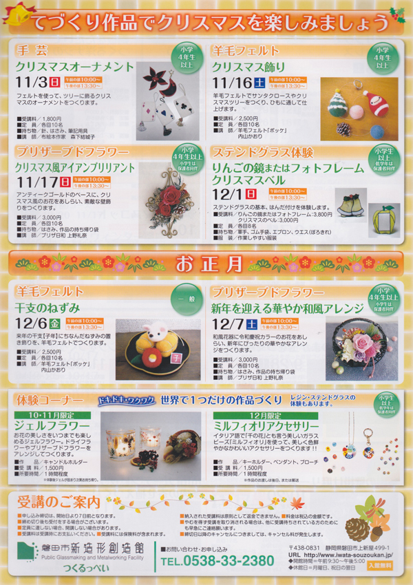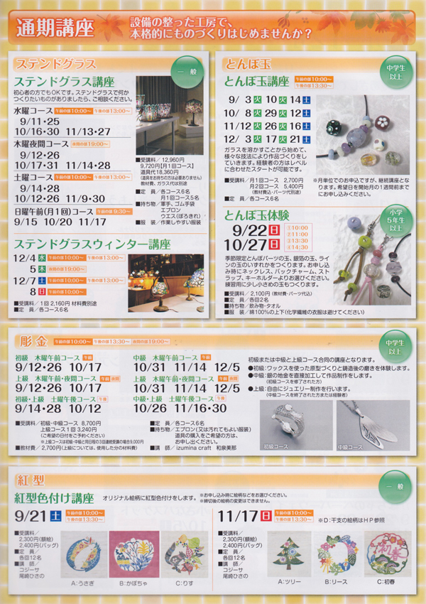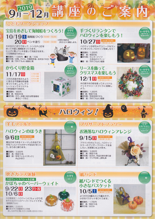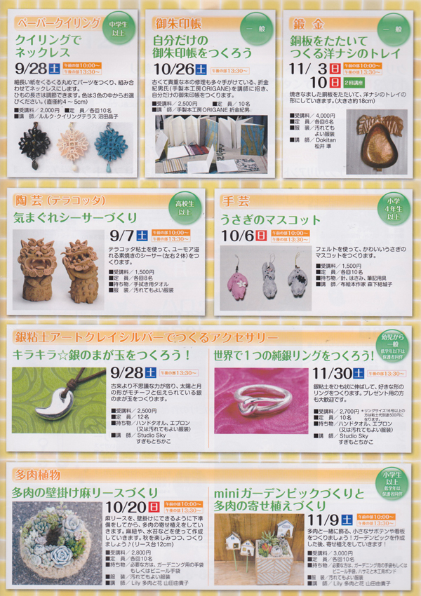 つくるっぺい 秋の講座のご案内