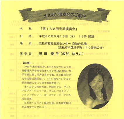 - オルガン演奏会, 交歓の場, 浜松市福祉交流センター, 野田優子