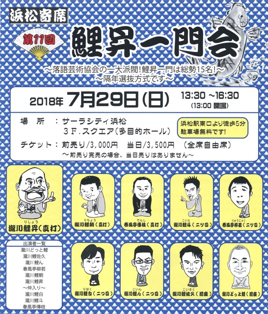 後援:浜松商店界連盟 浜松街中にぎわい協議会 東海落語従来