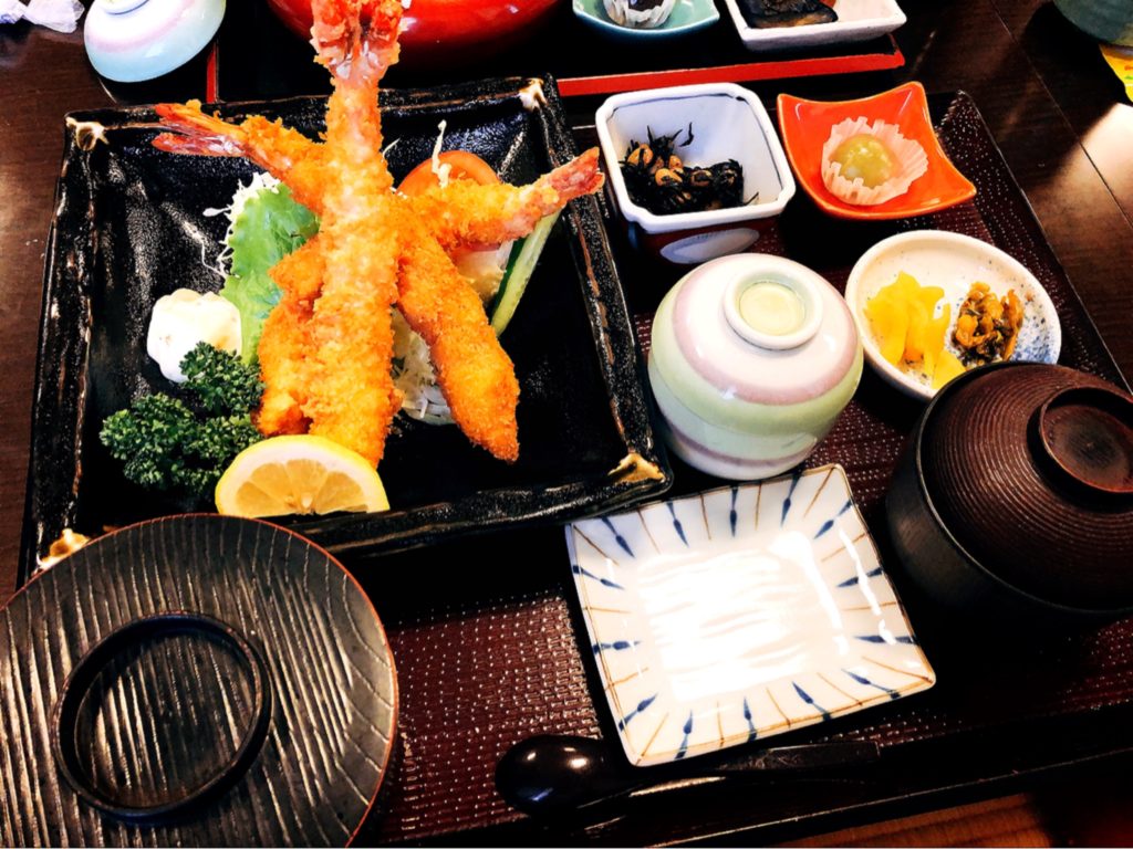 おすすめはカツオ!との情報を掴んていましたが、私は刺身定食、友人はエビフライ定食を注文。