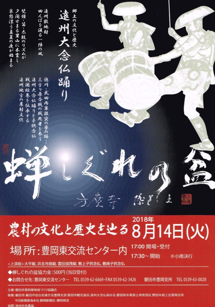 - 8/14 遠州大念仏踊り 蝉しぐれの盆 はコメントを受け付けていません
