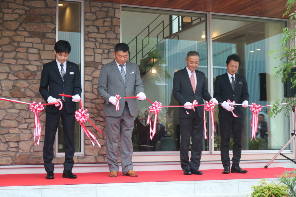 9/14(金)、グランドオープンに先駆け、関係者向けにプレオープンが行われました。生憎の天気にも関わらず、多くの人が訪れ、2棟のモデルハウスの内覧と、新たな生まれた袋井市の住まいを支えていく「コーワ住センター袋井店」を祝福しました。