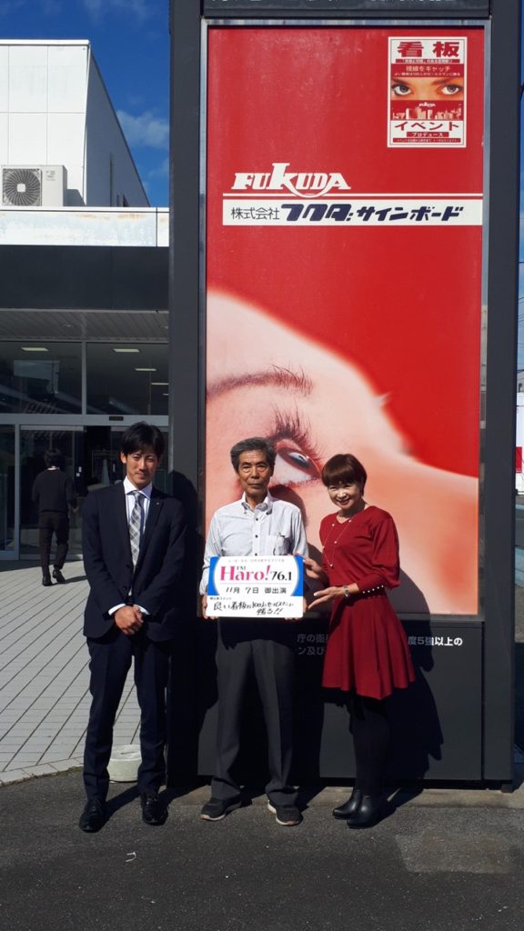 実は、フクダサインボードさんにはFMHaro!のスタジオ看板や特番の看板、パーソナリティの紹介ボード、新ハロゴンのラッピング等いろいろ作ってくださいました!