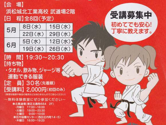 - 受講者募集, 日本空手松涛連盟浜松将陽館, 浜松城北工業高校, 空手教室