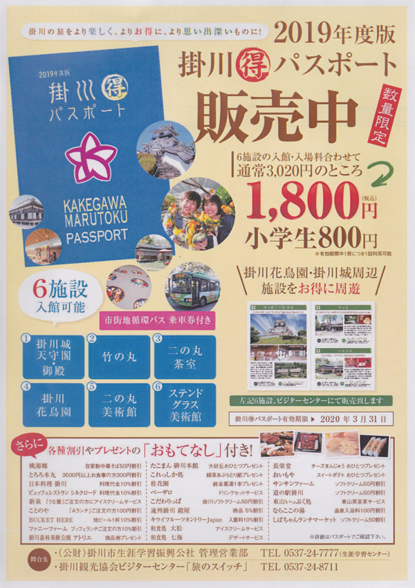 - 掛川まる得パスポート, 掛川城周辺, 掛川市, 掛川花鳥園