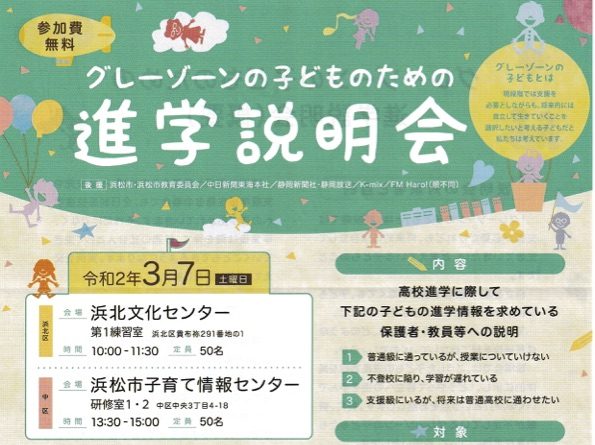 - グレーゾーンの子どものための進学説明会, 浜北文化センター, 浜松アリーナ, 浜松市子育て情報センター