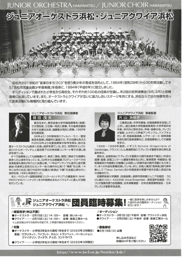 ジュニアオーケストラ浜松・ジュニアクワイア浜松 スプリングコンサート2020