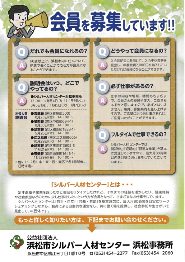 - シルバー人材センター, 人財大募集, 就職, 浜松市