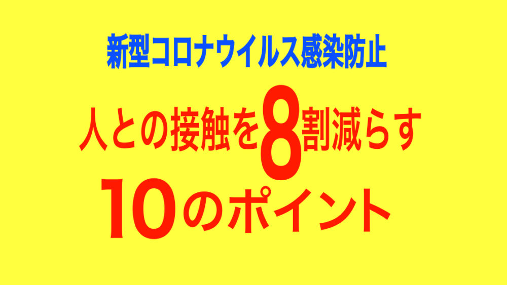 人との接触を8割減らす、10のポイント。あなたと身近な人の命を守るために、、、日常の生活スタイルを見直しましょう。