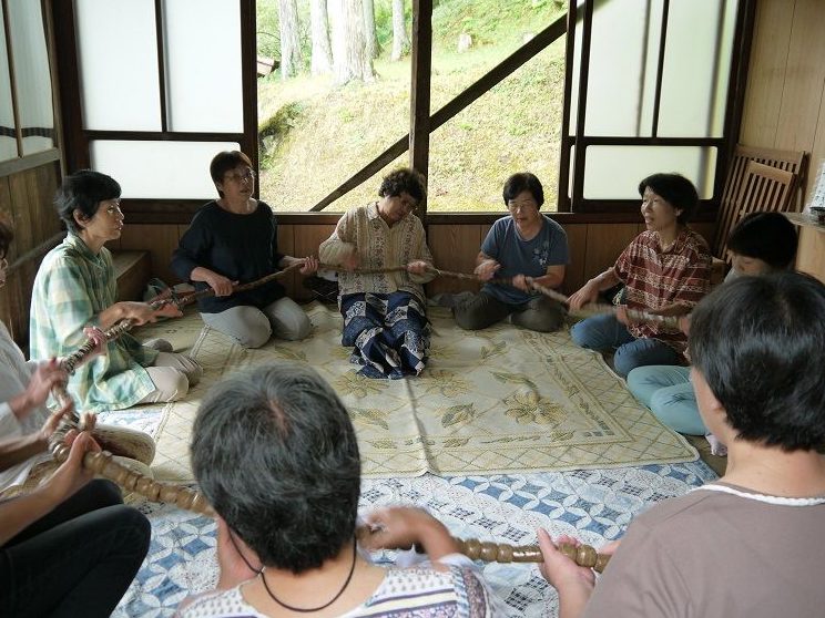 清崎の百万遍念仏は、一同が外陣に輪をつくって座り、大数珠を右に回しながら鉦の拍子で「南無阿彌陀仏」と念仏の唱和をします。