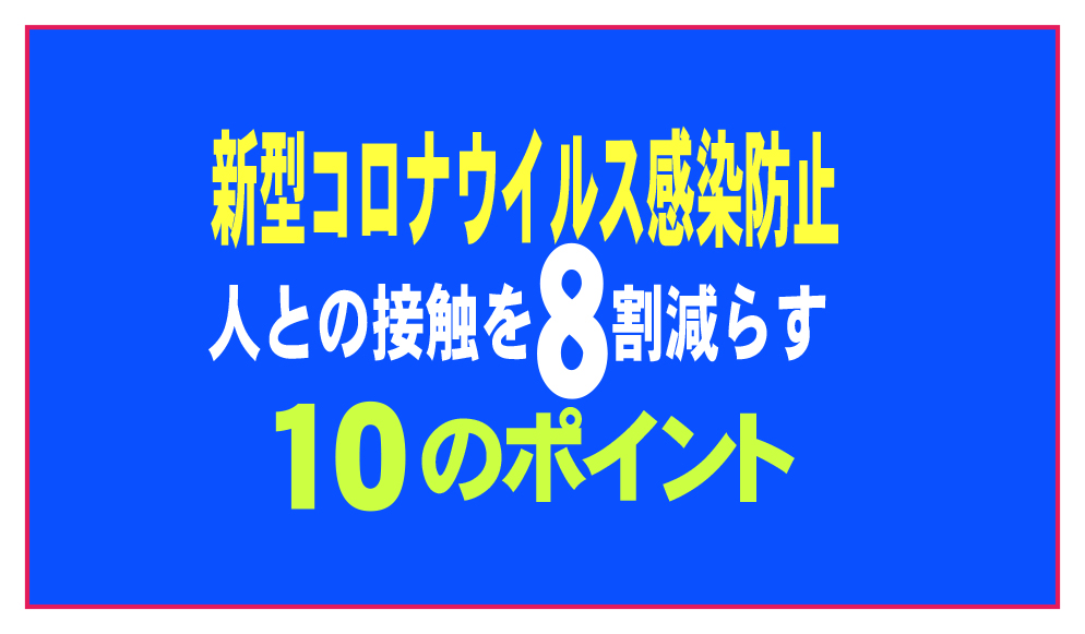 人との接触を8割減らす、10のポイント。あなたと身近な人の命を守るために、、、日常の生活スタイルを見直しましょう。
