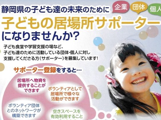 静岡県の子ども達の未来のために「子どもの居場所サポーター」になりませんか?