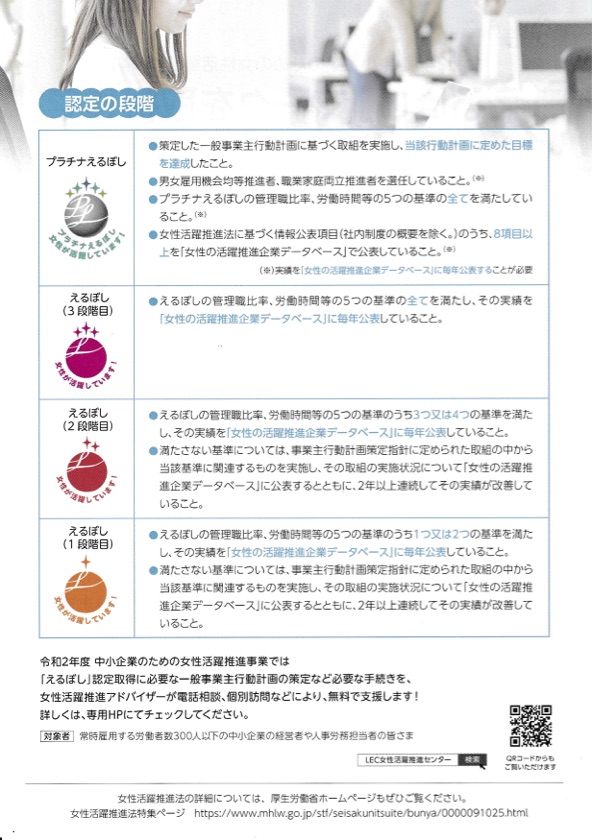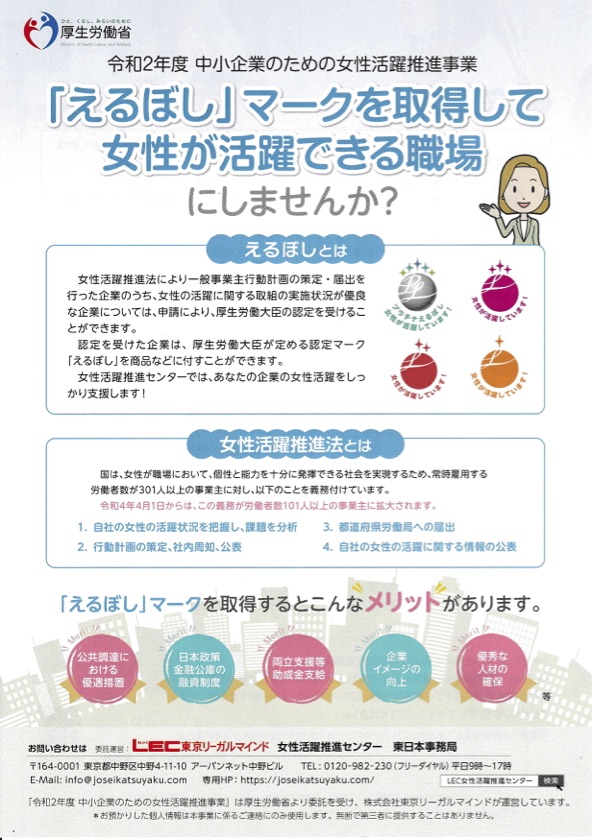 「えるぼし」マークを取得して女性が活躍できる職場にしませんか?