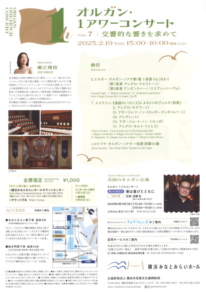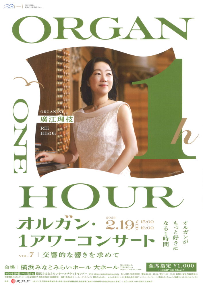 オルガン・1アワーコンサート 2/19(水)横浜みなとみらいホール