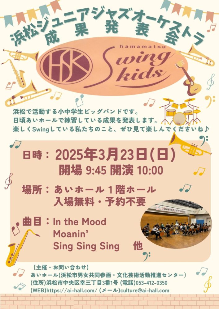- あいホール, ジュニアジャズオーケストラ, 成果発表会, 浜松