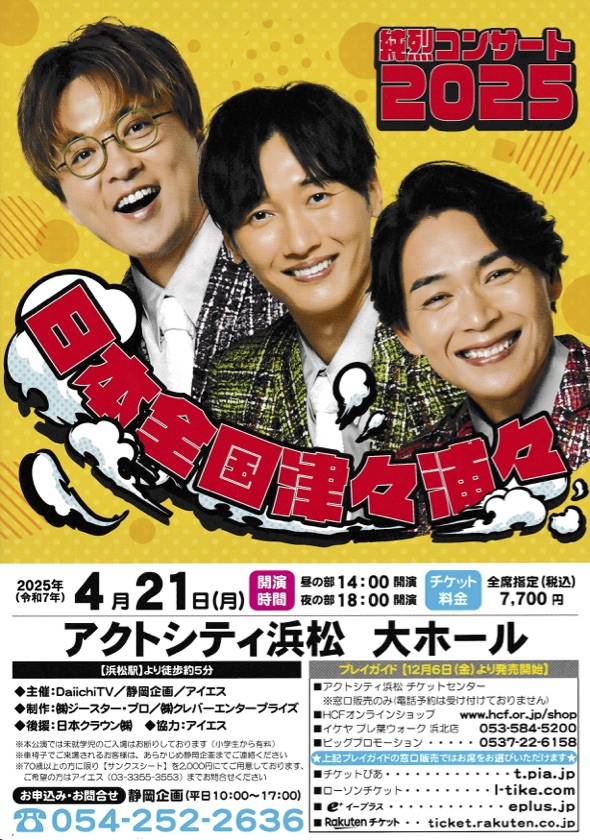 純烈コンサート2025 日本全国津々浦々 @アクトシティ浜松 大ホール