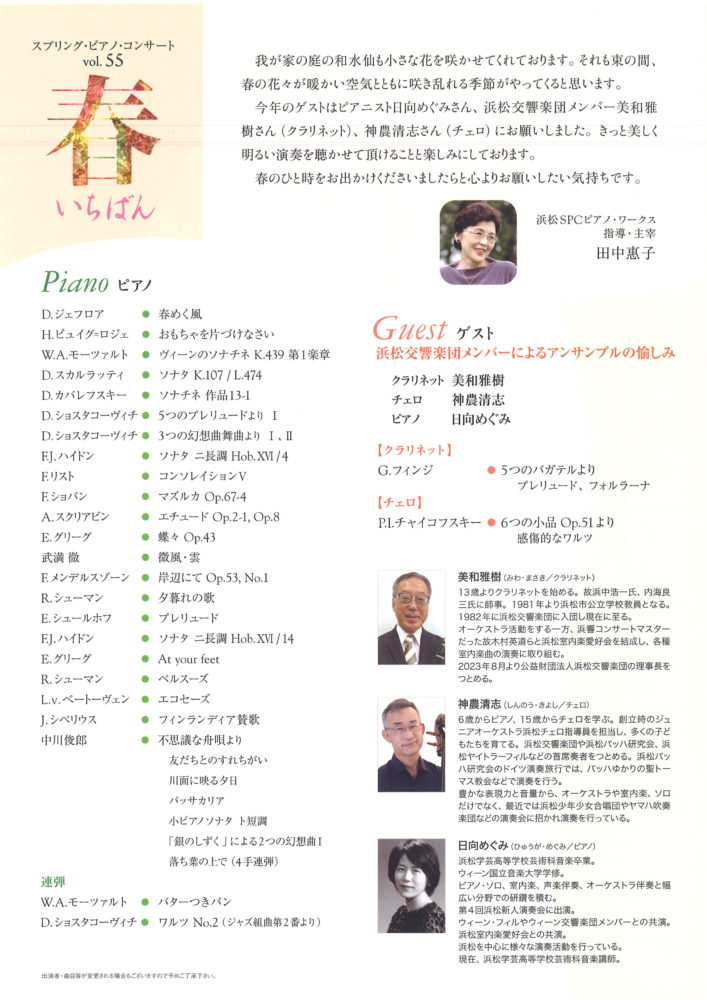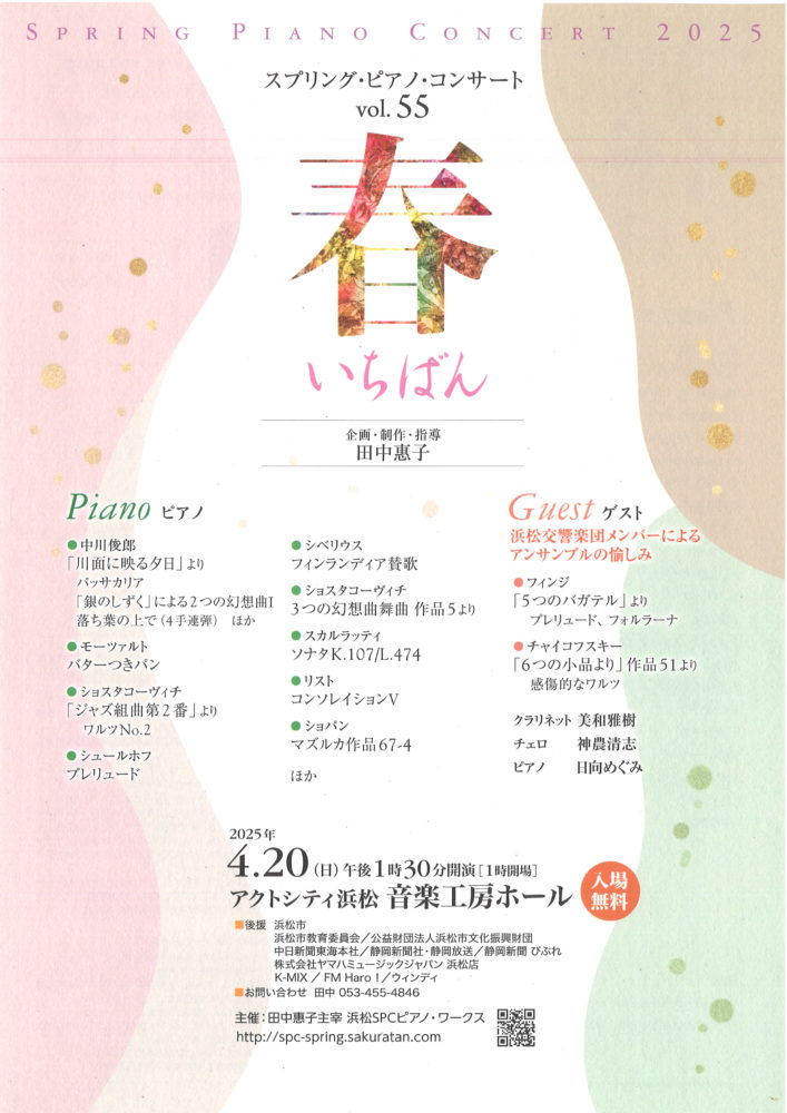 - スプリング・ピアノ・コンサートvol.55 春いちばん 4/20(日)アクトシティ浜松音楽工房ホール