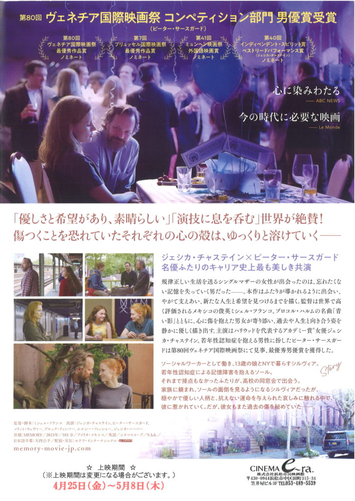 - あの歌を憶えている, シネマイーラ, ジェシカ・チャステイン, ピーター・サースガード, ミシェル・フランコ