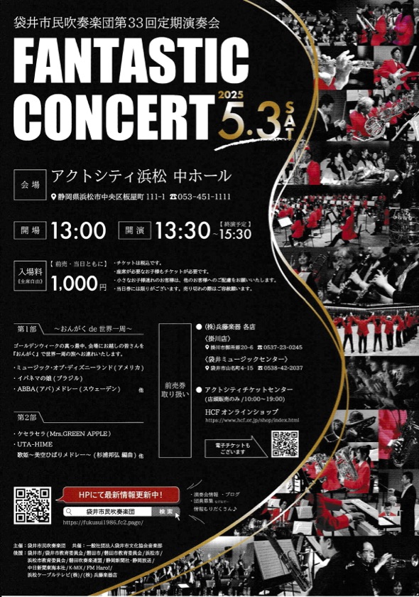 - FANTASTIC CONCERT, アクトシティ浜松, 定期演奏会, 袋井市民吹奏楽団