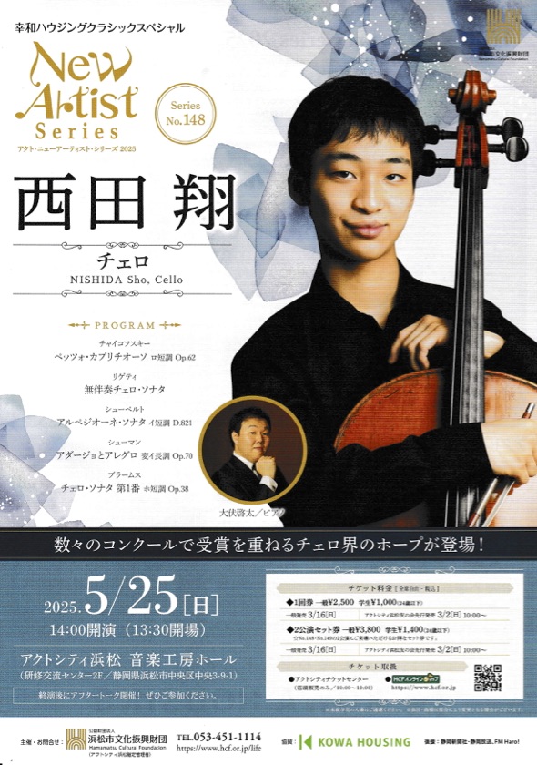 森山涼介チェロ・リサイタル 4/27(日)宗次ホール