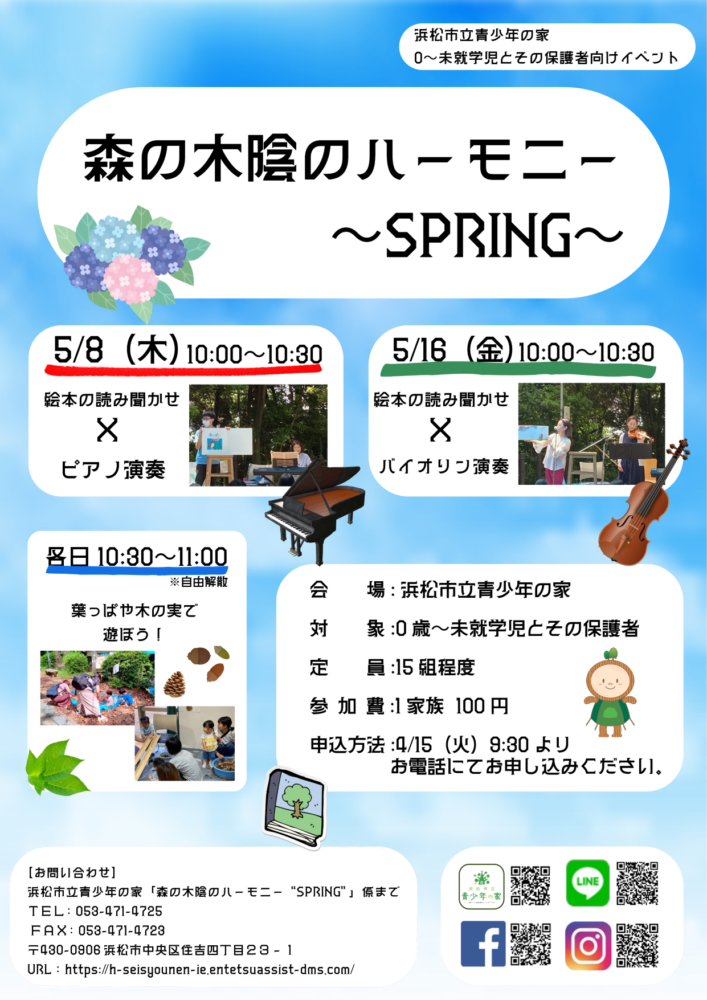 浜松市立青少年の家 森の木陰のハーモニー♪“SPRING” ~PARTⅡ“絵本&バイオリン”