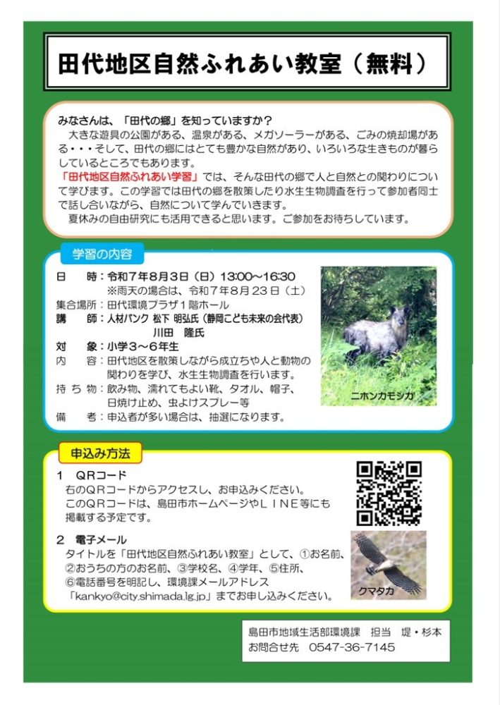 島田市 田代地区自然ふれあい教室~野鳥と水生生物を観察しよう~