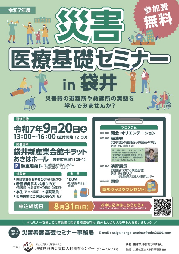 袋井市 災害医療基礎セミナー 申込8/31まで