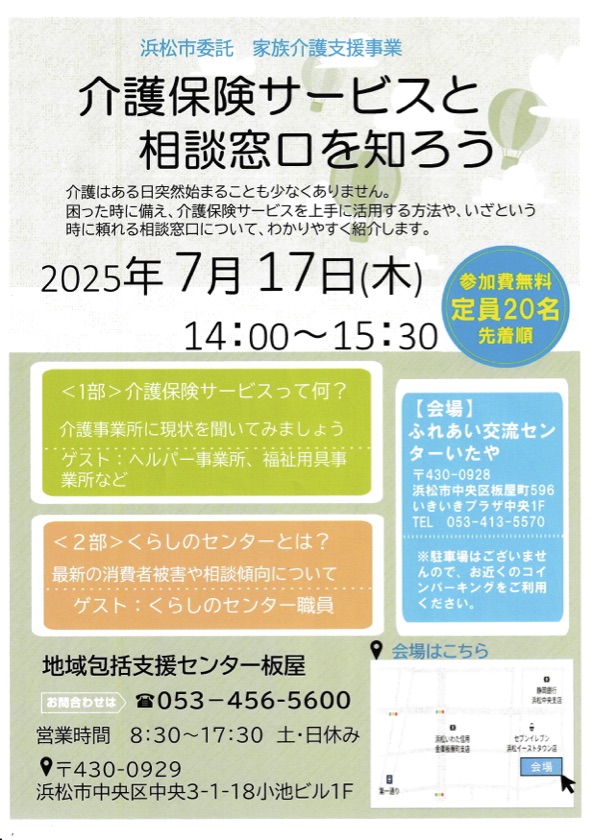 - 浜松市委託 家族介護支援事業「介護保険サービスと相談窓口を知ろう」