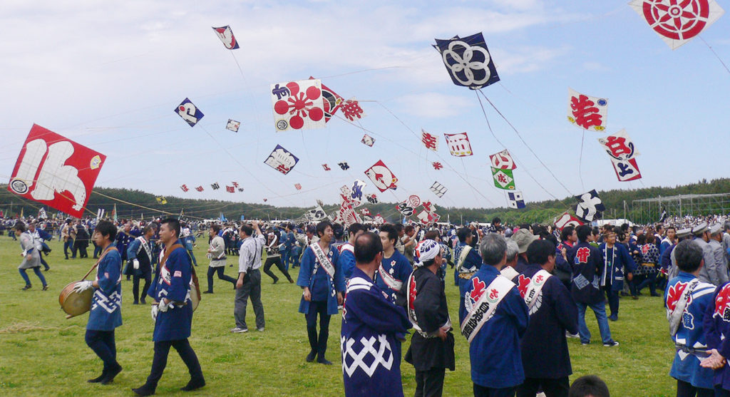 凧揚げ合戦(173か町の大凧が勇壮に遠州の空を舞う)中田島凧揚げ会場