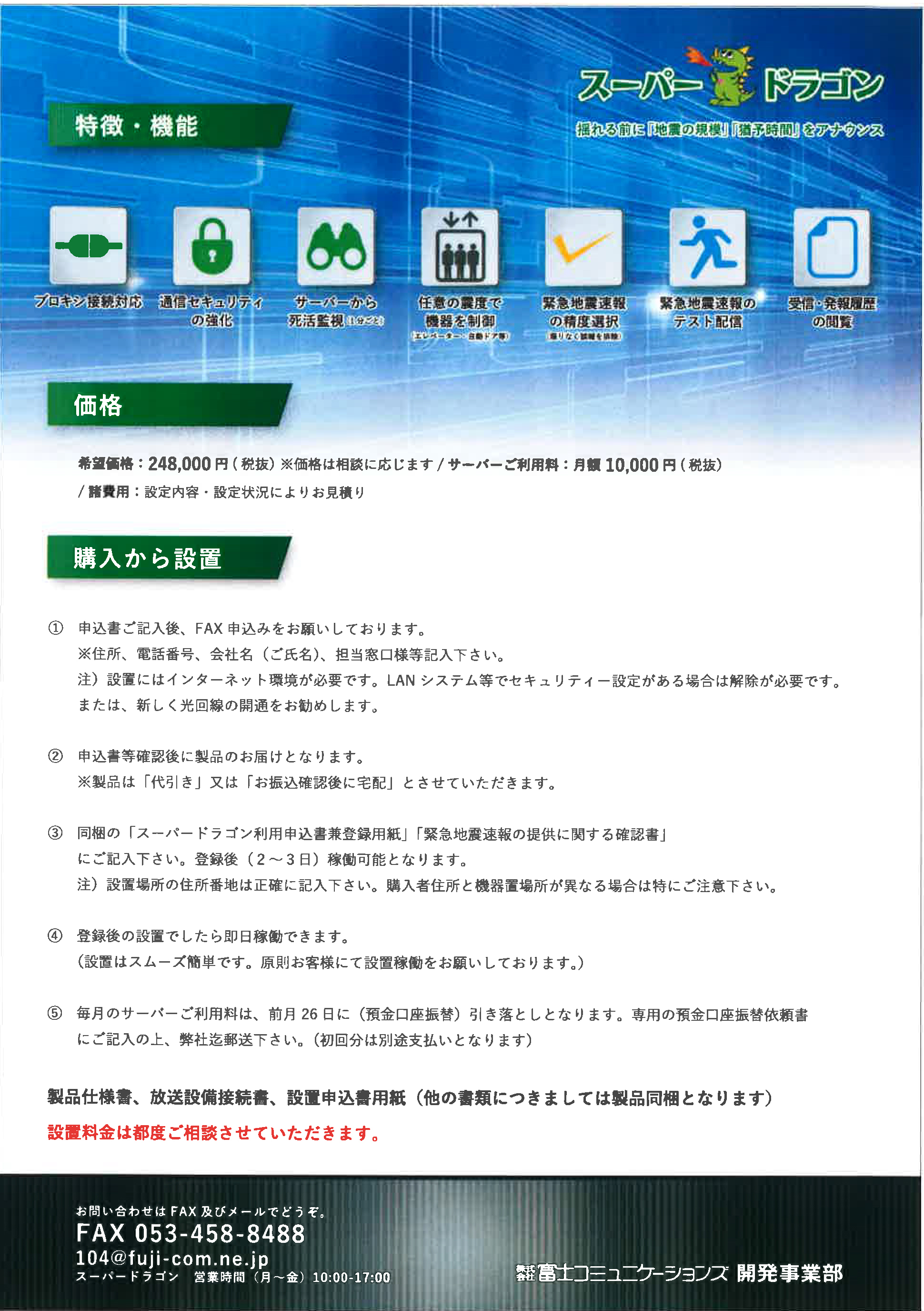 スーパードラゴン(緊急地震速報、受信装置)お問い合わせ