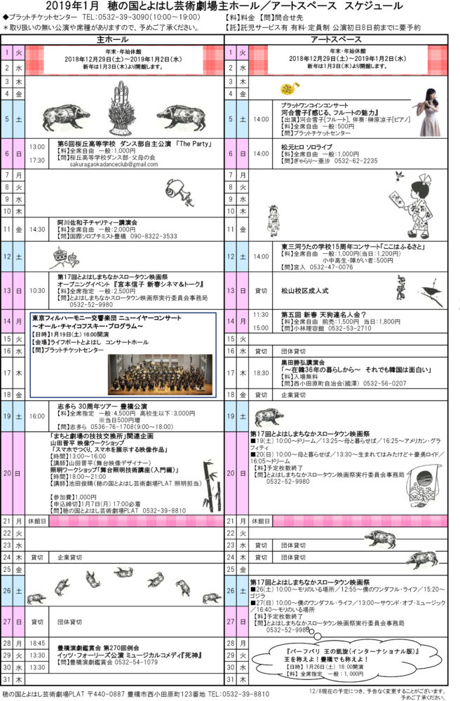 穂の国とよはし芸術劇場 2019.1スケジュール