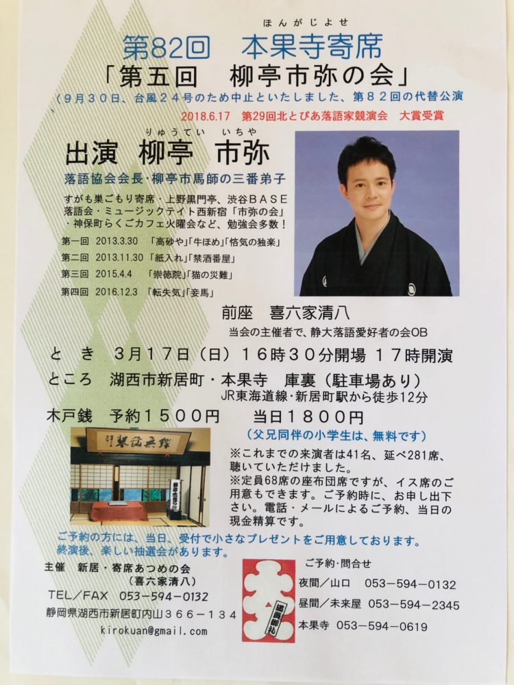 第82回 本果寺寄席「第5回 柳亭市弥の会」