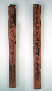 伊場遺跡から見つかった市内最古の文字資料のうち、古代の東海道の通行証と思われる木の札です。