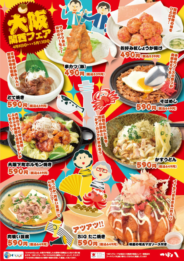 この機会に、つぼ八で大阪の味をたっぷりとお楽しみください! 皆様のご来店を心よりお待ちしております!