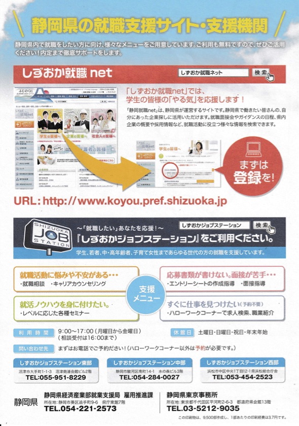 シズオカで働こう!静岡U.Iターン 就職サポートセンター 千輪 6か月前 まずは登録!内定まで徹底サポート! 登録・スケジュールの確認・予約はWEBから! https://www.koyou.pref.shizuoka.jp