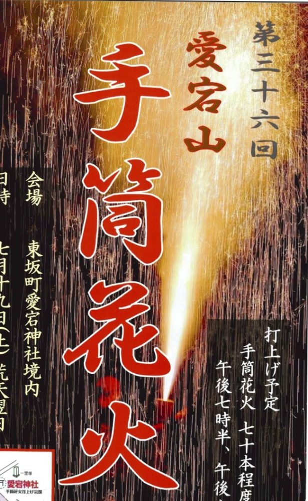 旧東海道筋の突き当たりにある愛宕神社の境内にて、迫力満点の手筒花火を間近で見ることのできる花火大会が行われます。