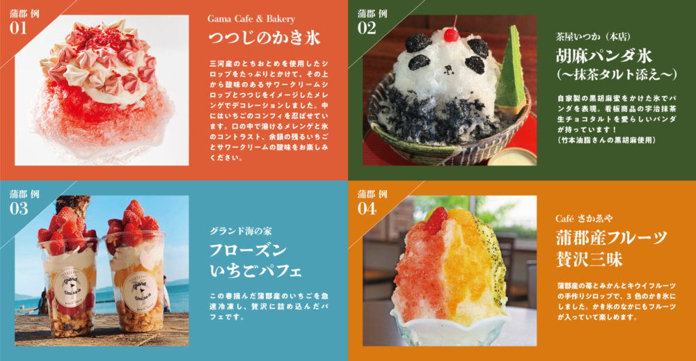 抹茶生産地として名高く歴史ある街並が三河の小京都と評される西尾市と、柑橘をはじめとする果物や深海魚の特産グルメに三河湾の美しい景観が自慢の蒲郡市。