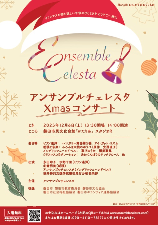 | 問い合わせ先 | アンサンブルチェレスタ TEL:090-4110-7817 |