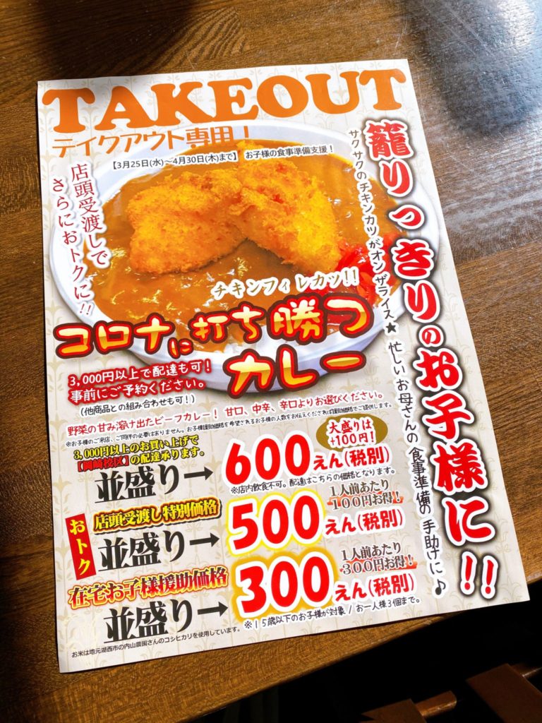 3000円以上で配達もしてくれますが、テイクアウトならば大人の方も500円になるんですよ〜。