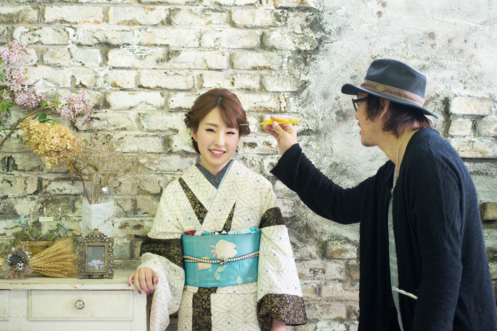 スタイルアンドスタイリスト半田山スタジオにてヘアメイクさんによる古着物の撮影会がありました。スタジオには15 人以上のヘアメイクさんが作品づくりの撮影にのぞまれました。ヘアサロン「パヴェ」さんとパヴェのお客様もモデルさんとして参加。浜松で活躍する美容師さんの熱意と真剣な眼差しを感じられた1 日でした。