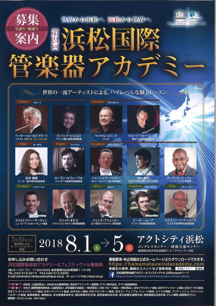 お申し込みお問い合わせ:浜松国際管楽器アカデミー&フェスティヴァル事務局 042-313-3213
