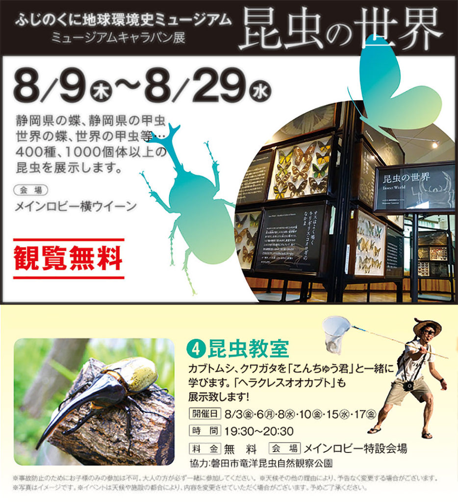 - つま恋, ふじのくに地球環境史ミュージアム, カブトムシ, クワガタ, ヘラクレスオオカブト, ミュージックキャラバン展, 夏休み, 昆虫, 昆虫の世界, 昆虫教室