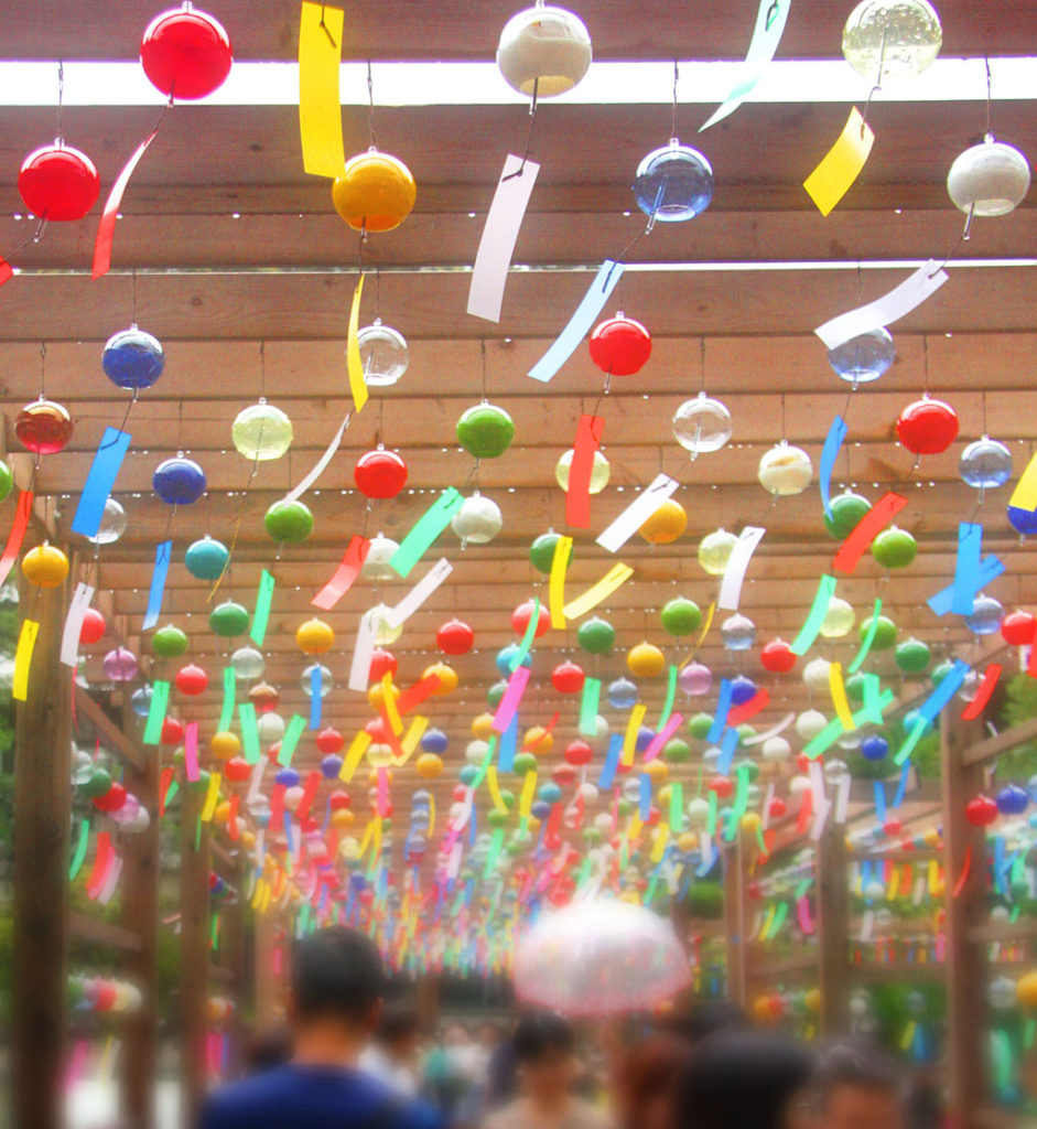 色とりどりの風鈴、そして涼しげな音色に癒されます。