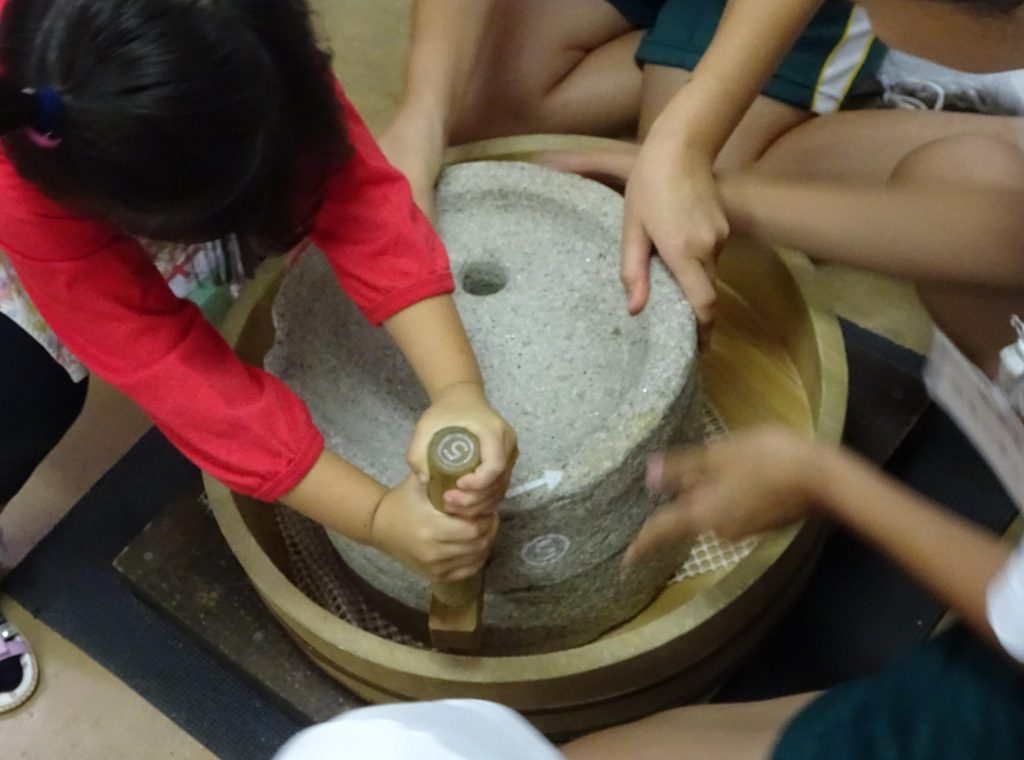 ○大豆を石臼でひいて、きな粉を作ろう。
