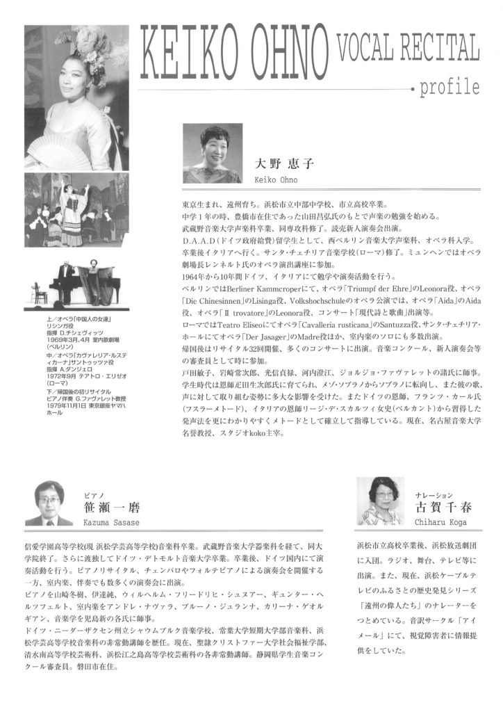 大野恵子 ヴォーカルリサイタル アクトシティ浜松音楽工房ホール