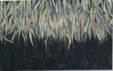飯田駅観光案内所では駅構内の展示スペースに小麻智美さんの絵画4点を展示しました。