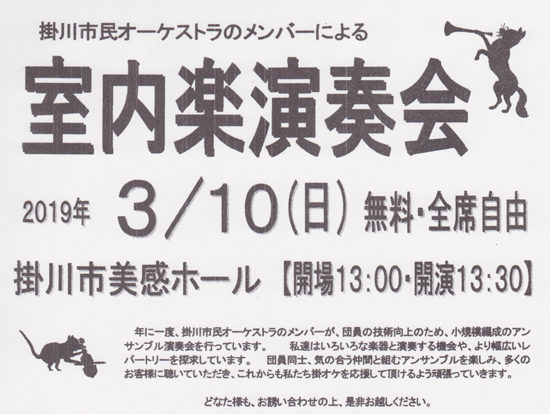 掛川市民オーケストラ 室内楽演奏会 3月10日