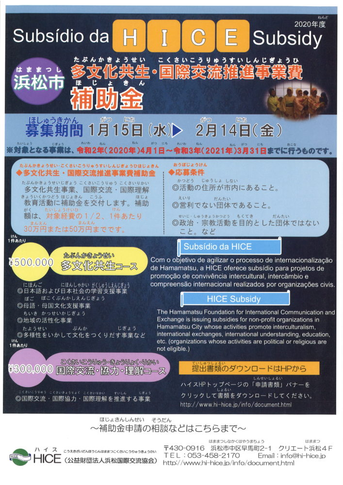 - 多文化共生・国際交流推進事業費補助金, (公財)浜松国際交流協会(HICE)